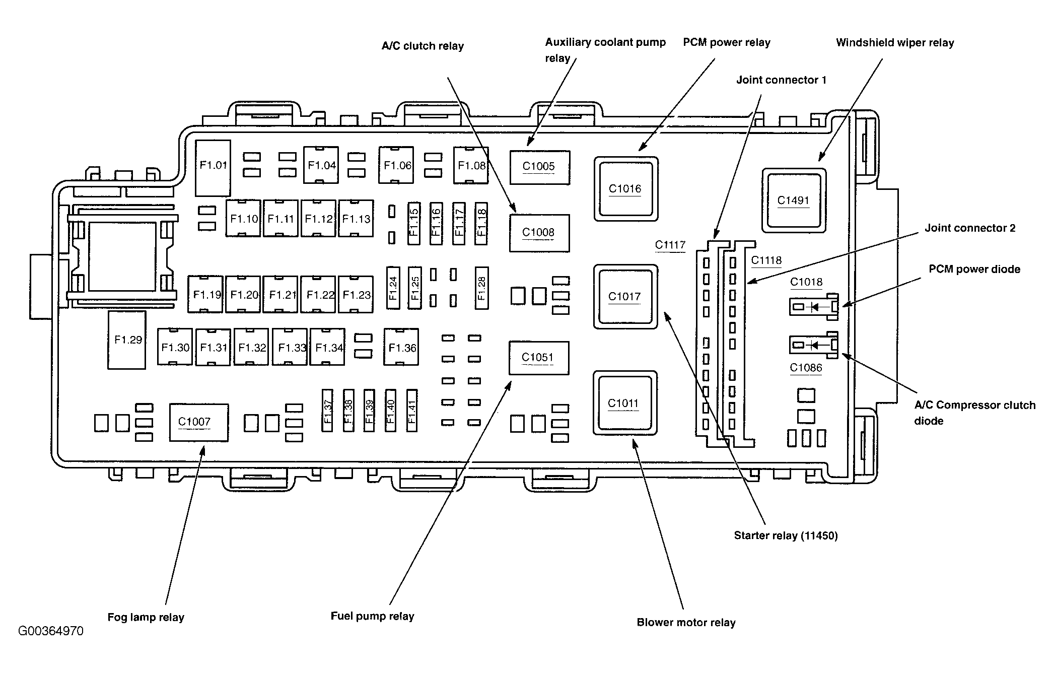 A/C Compressor Clutch Diode In battery junction box (BJB). See Figure.