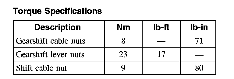 Torque Specifications: