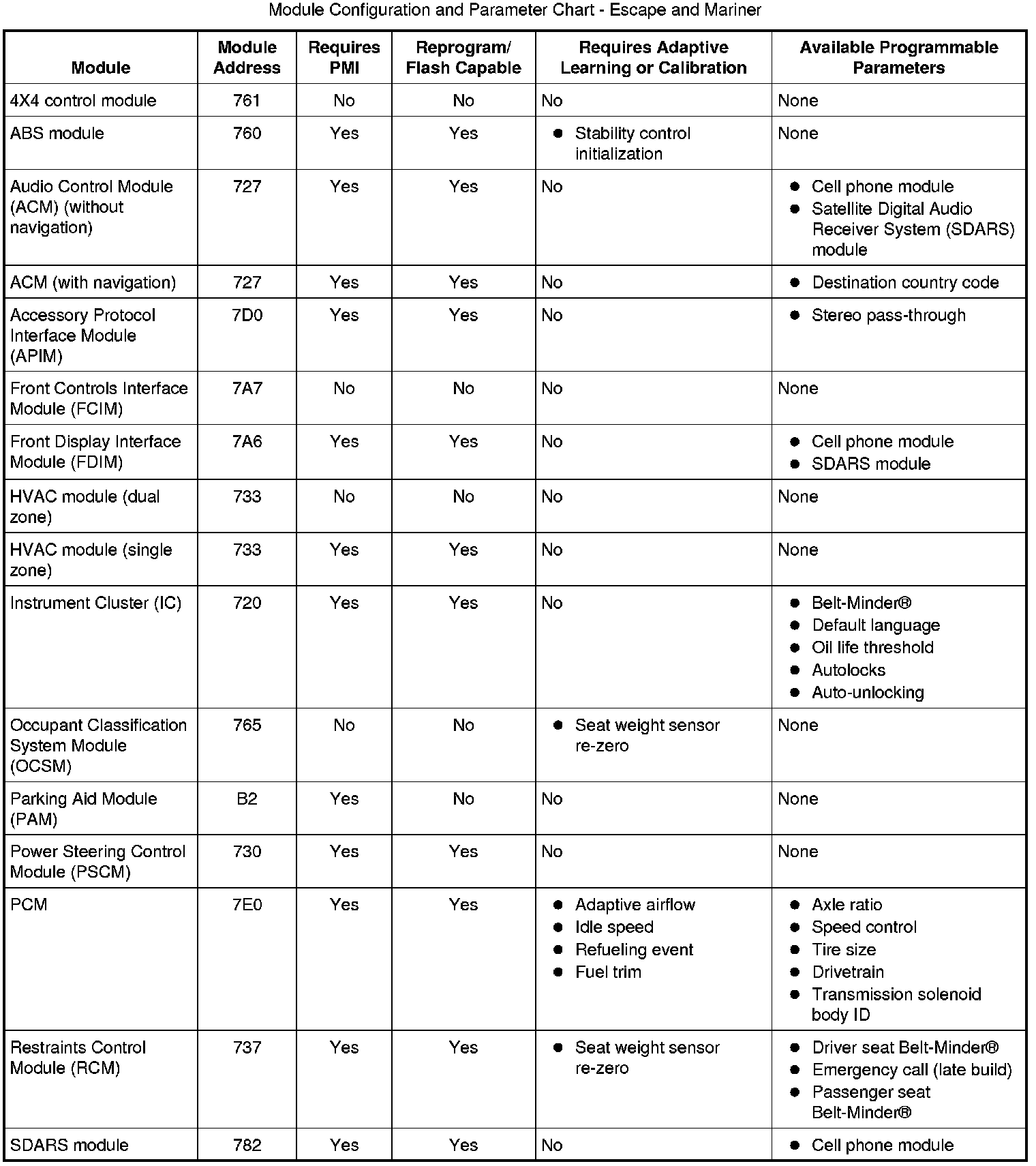 Programmable parameters are customer preference items that may be modified by the dealer via scan tool or in some cases modified by the customer following a procedure listed in the vehicle Owner's Literature. While many configuration options may exist for a module, only a few of these options are programmable parameters.