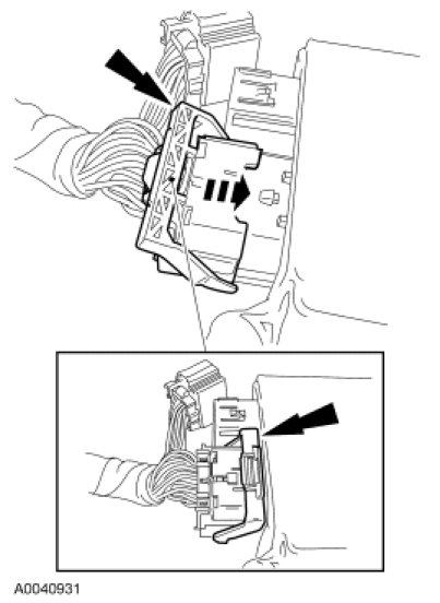 - NOTICE: Do not push the connector to the point where the lever pivots and seats itself. Light pressure is needed to get the connector into position on the Restraints Control Module (RCM) before using the lever to fully seat the connector. Failure to follow these instructions may result in vehicle damage, equipment damage, component damage and/or system failure.