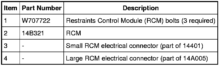 NOTE: When installing a new Restraints Control Module (RCM), always make sure the correct RCM is being installed. If an incorrect RCM is installed, erroneous DTCs will result.