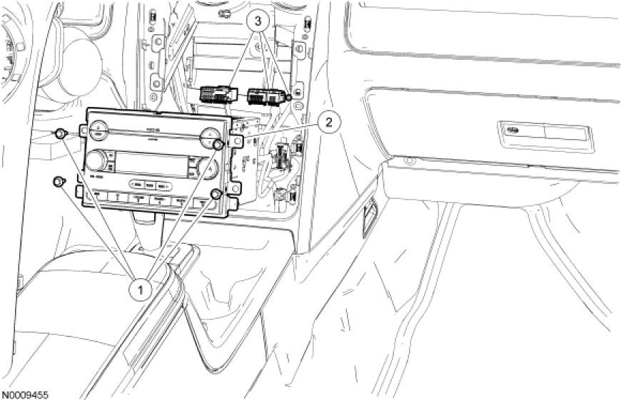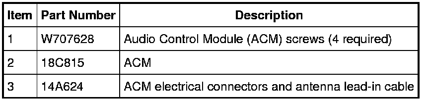 NOTE: If installing a new navigation Audio Control Module (ACM), remove the navigation map DVD, if possible, before sending the ACM to an authorized audio system repair facility.