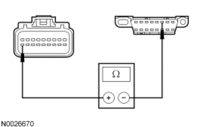 - Measure the resistance between the OCSM C3285-18, circuit VDB04 (WH/BU), harness side and the DLC C251-6, circuit VDB04 (WH/BU), harness side.