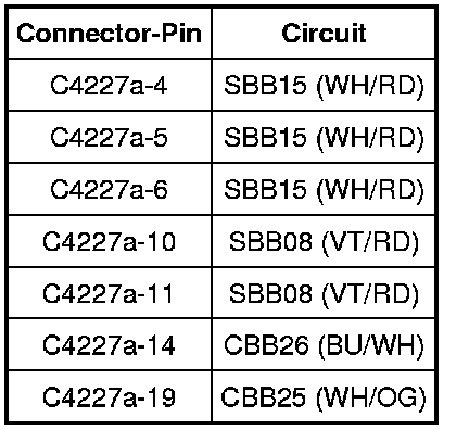 - Measure the resistance between the BCM C4227a-28, circuit VDB05 (WH), harness side and the DLC C251-14, circuit VDB05 (WH), harness side.