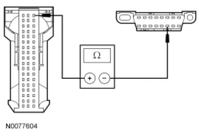 - Measure the resistance between the APIM C3338-16, circuit VDB06 (GY/OG), harness side and the DLC C251-3, circuit VDB06 (GY/OG), harness side.