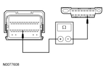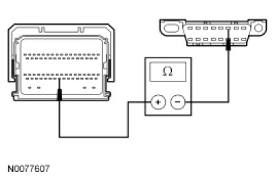 - Measure the resistance between the IC C220-15, circuit VDB04 (WH/BU), harness side and the DLC C251-6, circuit VDB04 (WH/BU), harness side.