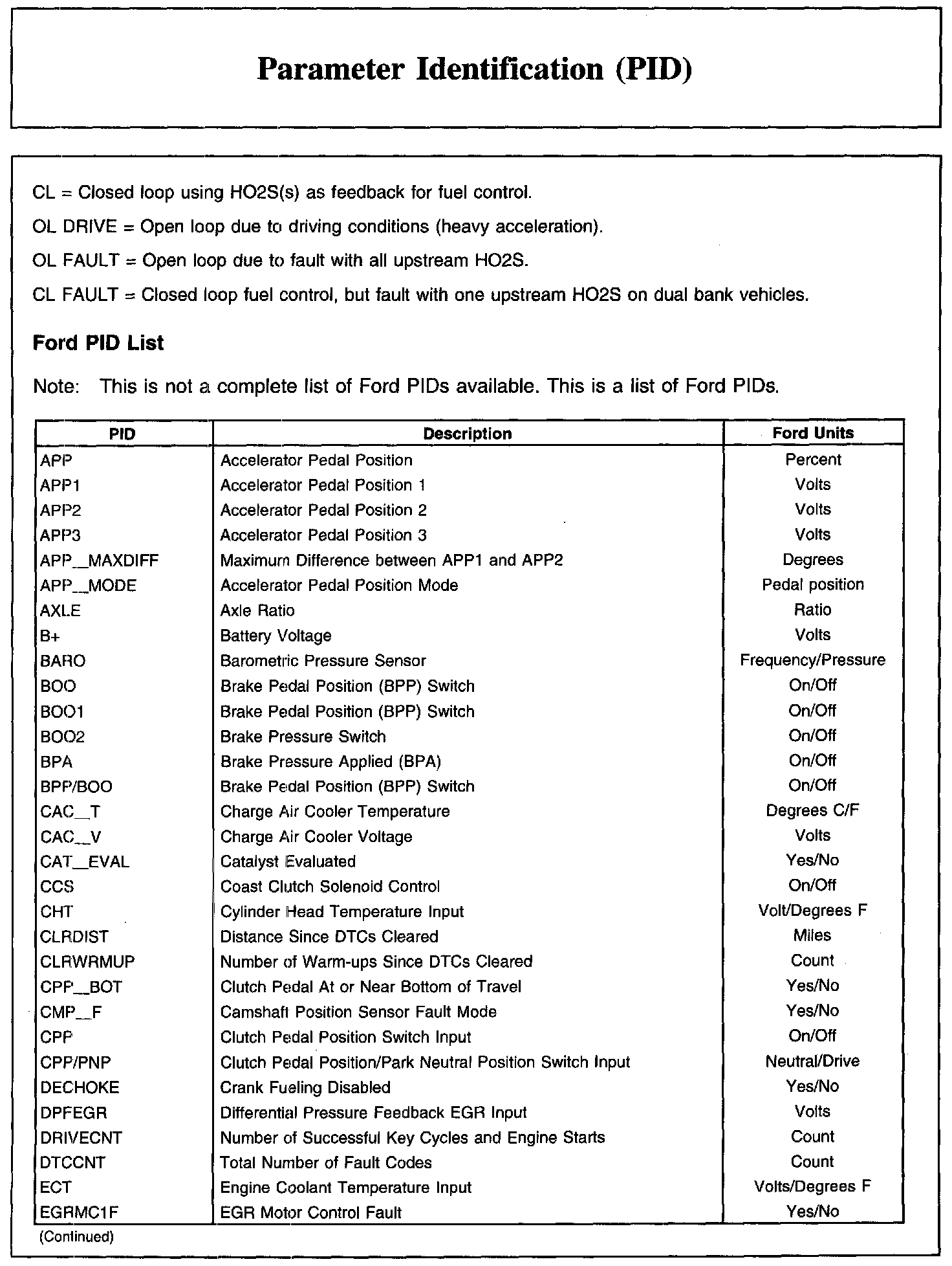 Home >> Mercury >> 2010 >> Mariner 2WD L4-2.5L >> Repair and Diagnosis >> Powertrain Management >> Computers and Control Systems >> Testing and Inspection >> Scan Tool Testing and Procedures >> Parameter Identification (PID)