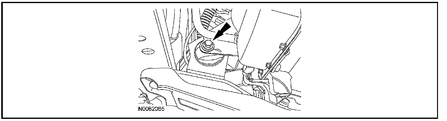 13. Remove the nut and the engine support crossmember. Discard the nut.