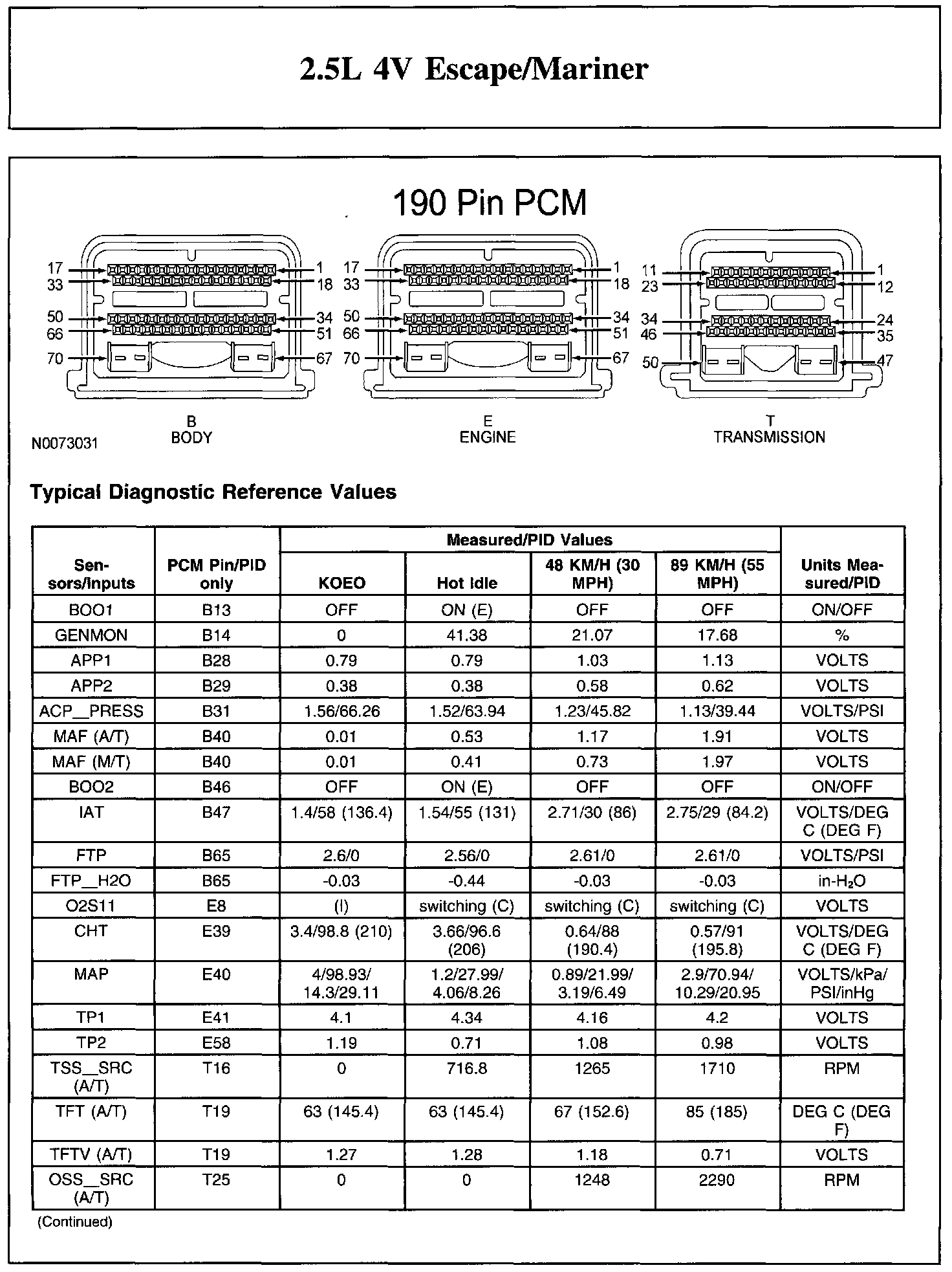 Home >> Mercury >> 2011 >> Mariner 2WD L4-2.5L >> Repair and Diagnosis >> Powertrain Management >> Computers and Control Systems >> Testing and Inspection >> Scan Tool Testing and Procedures >> Typical Diagnostic Reference Values