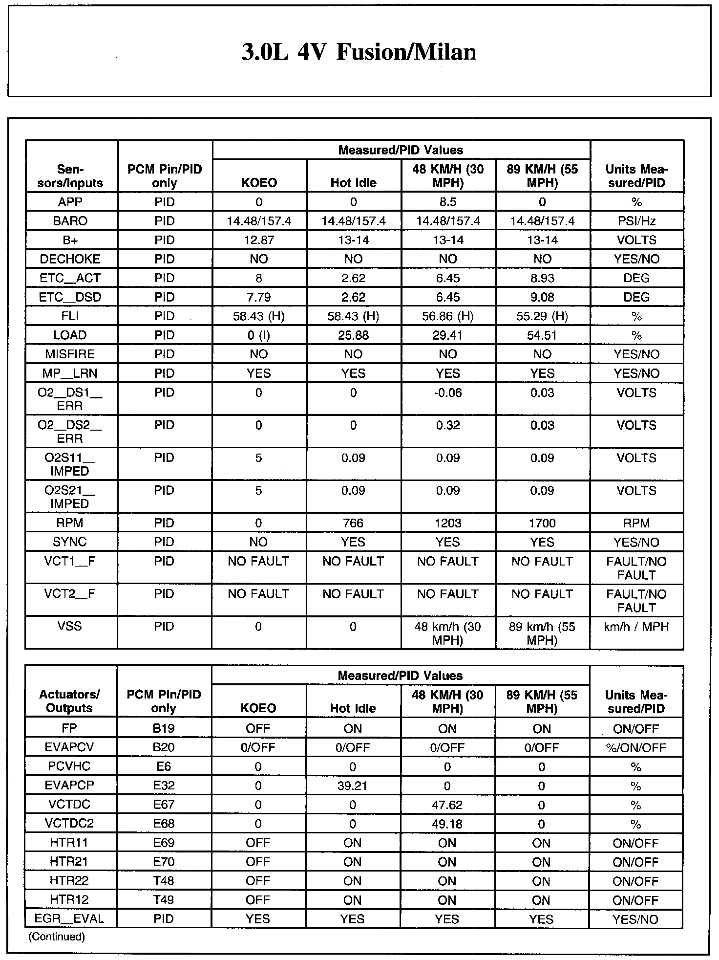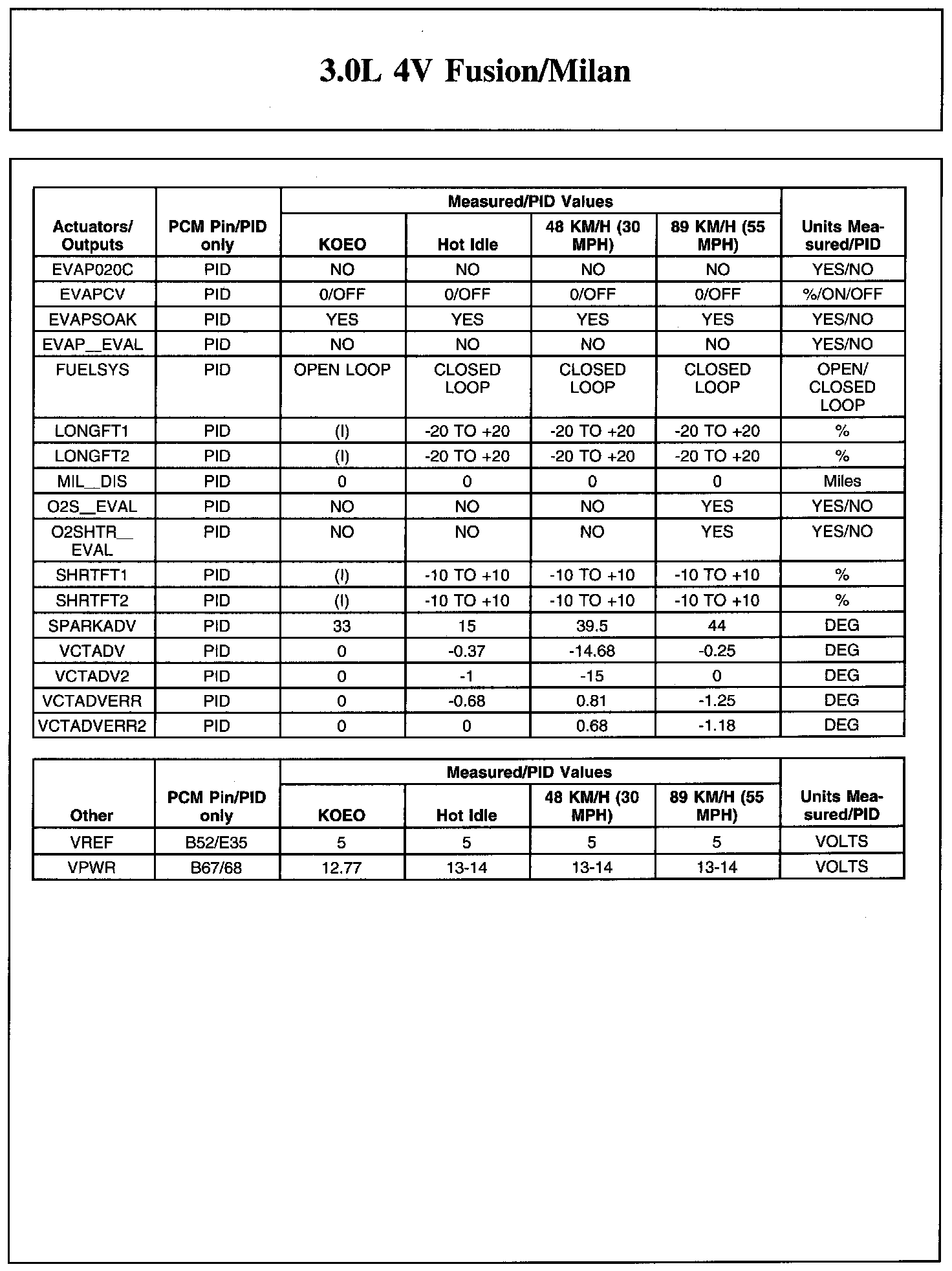 Home >> Mercury >> 2011 >> Milan AWD V6-3.0L >> Repair and Diagnosis >> Powertrain Management >> Computers and Control Systems >> Testing and Inspection >> Scan Tool Testing and Procedures >> Typical Diagnostic Reference Values