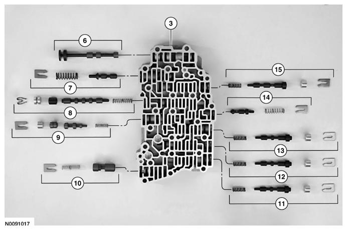 - Install the valve body valves, springs and retaining clips in the main control valve body. See Figure the Valve Body illustration at the beginning of this procedure for valve and spring locations.