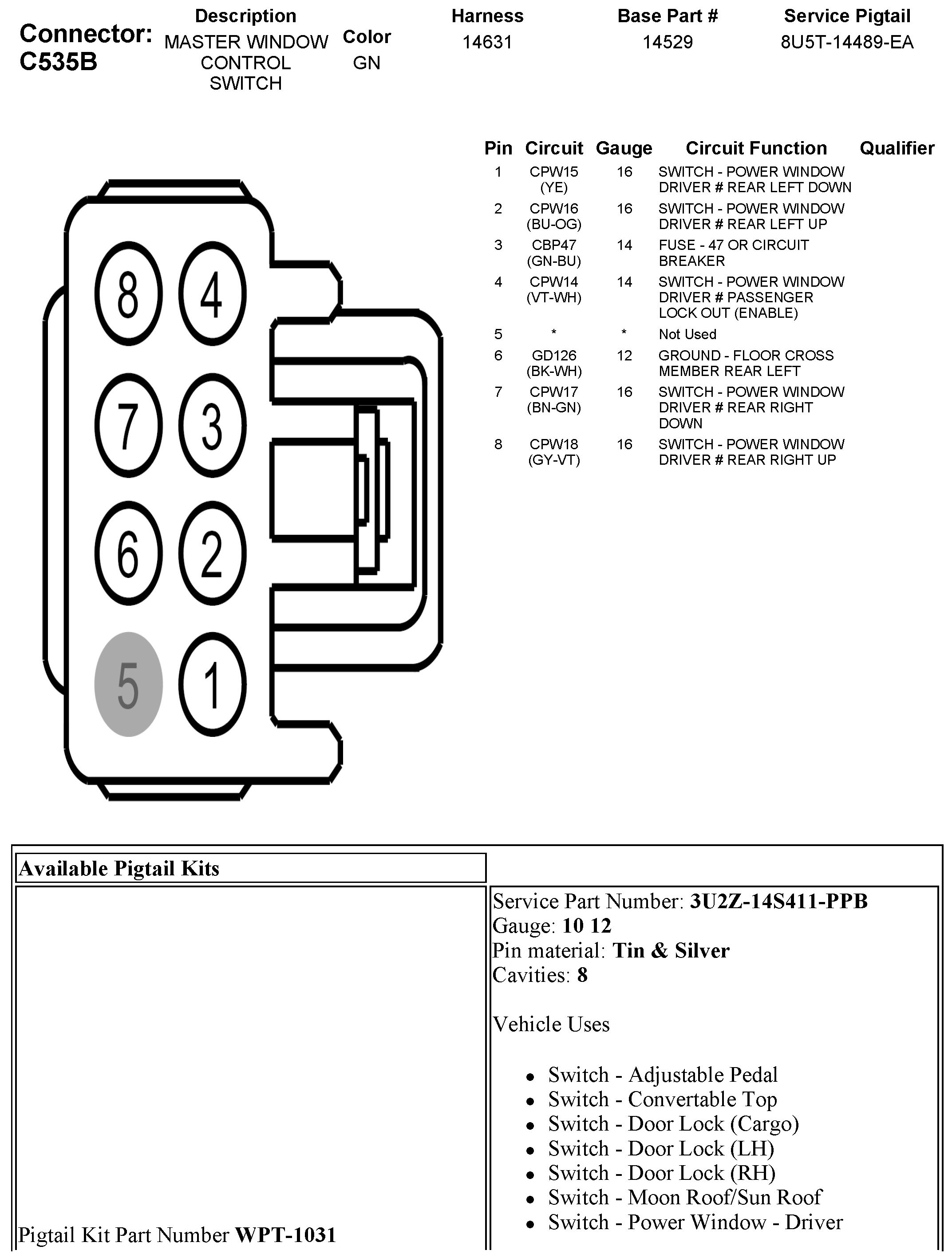 C535B Master Window Control Switch