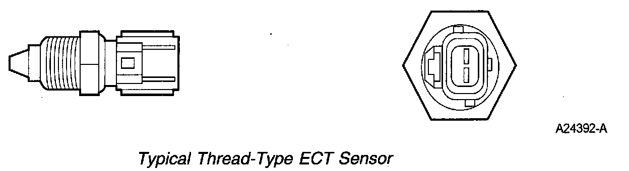 The ECT measures the temperature of the engine coolant. The PCM uses the ECT input for fuel control and for cooling fan control. The ECT sensor can be a threaded, push-in, or twist-lock type. The ECT sensor is located in an engine coolant passage.