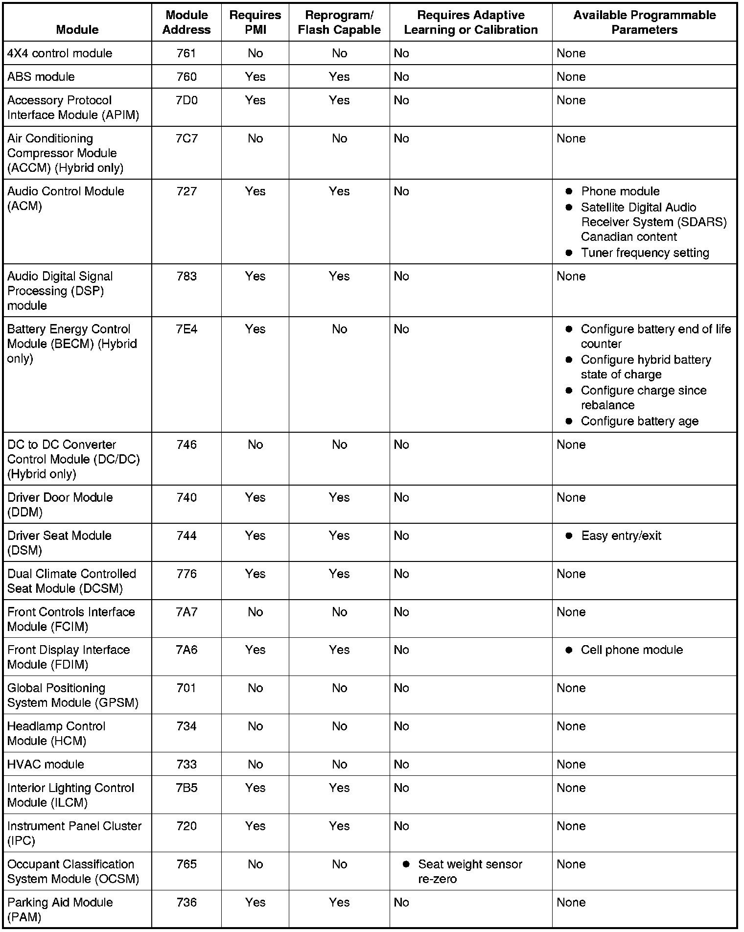 Programmable parameters are customer preference items that may be modified by the dealer via scan tool or in some cases modified by the customer following a procedure listed in the vehicle Owner's Literature. While many configuration options may exist for a module, only a few of these options are programmable parameters.