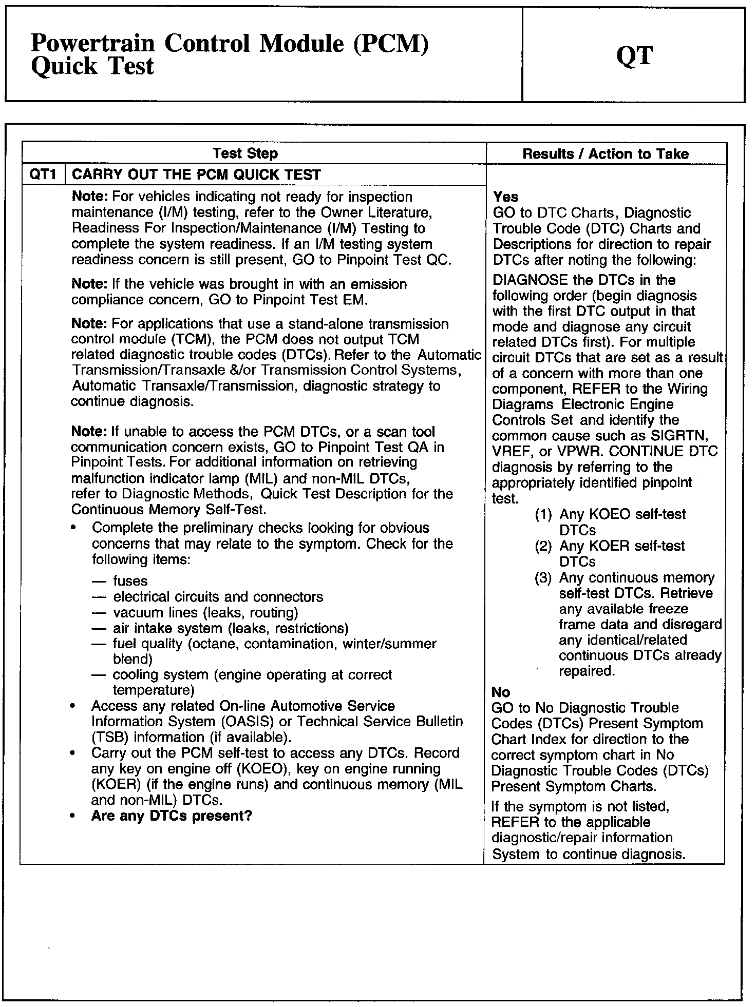QT: POWERTRAIN CONTROL MODULE (PCM) QUICK TEST