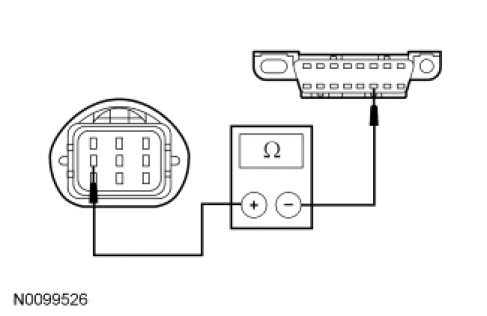 - Measure the resistance between the DC/DC C1457d-9, circuit VDB04 (WH/BU), harness side and the DLC C251-6, circuit VDB04 (WH/BU), harness side.