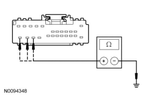 - Measure the resistance between the audio DSP module C4235c-11 or C4240c-11, circuit VDB06 (GY/OG), harness side and the DLC C251-3, circuit VDB06 (GY/OG), harness side.