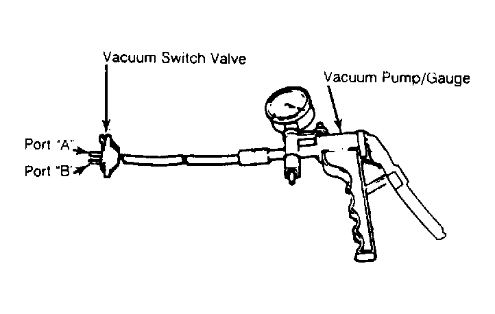 - Remove Vacuum Switch Valve (VSV) from vehicle. Apply vacuum to the diaphragm nipple. Blow through either port "A" or "B". See Fig 1 .