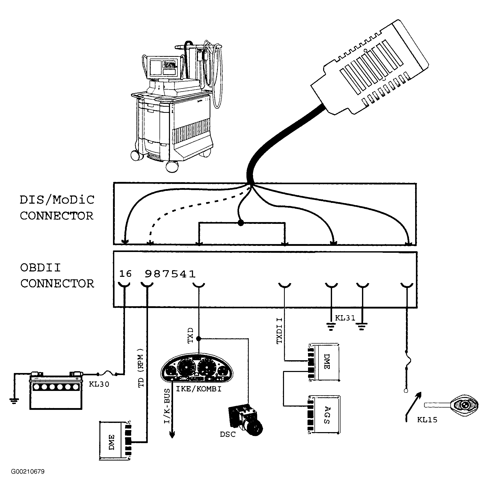 OBD-II Diagnostic Trouble Codes (DTCs) are accessed using a generic scan tool connected to vehicle Data Link Connector (DLC). See Fig 1. MINI trouble codes can be accessed using BMW's GROUP TESTER ONE (GT-1) or DISplus hardware system. These are often referred to as BMW SCAN TOOL.