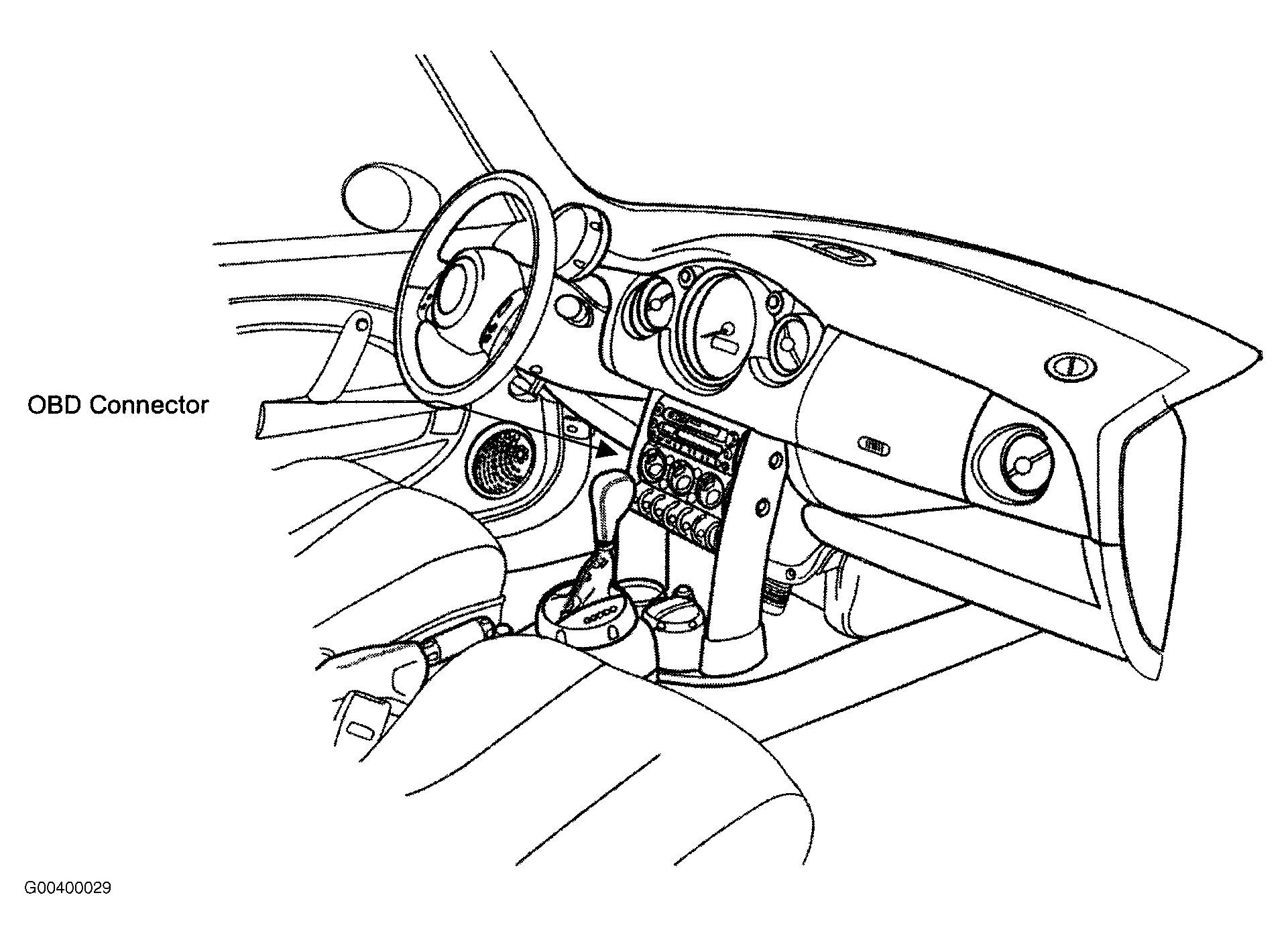 The OBD-II connector is located in driver's footwell to left of steering column. See Fig 2