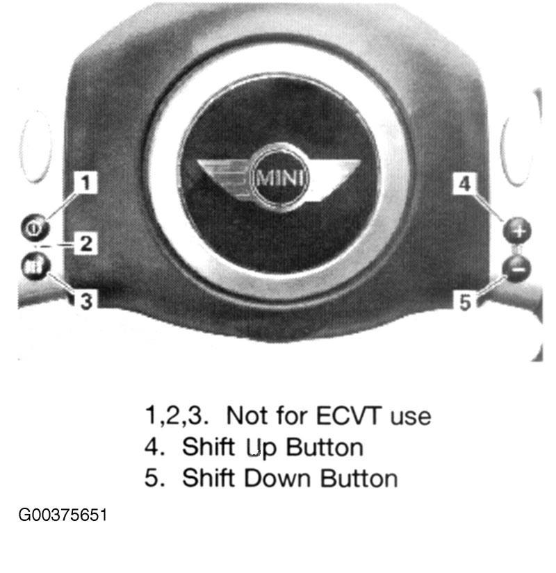 Movement of the selector lever (or steering wheel buttons) in a forward direction, plus (+), changes the transmission up the gear ratios and movement in a rearward direction, minus (-), changes the transmission down the gear ratios. See Fig 2 and Fig 3 .