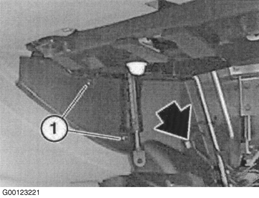 - Unfasten bolts (1), pull cable out of bracket and remove finisher from metal carrier toward rear. See Fig 1 .