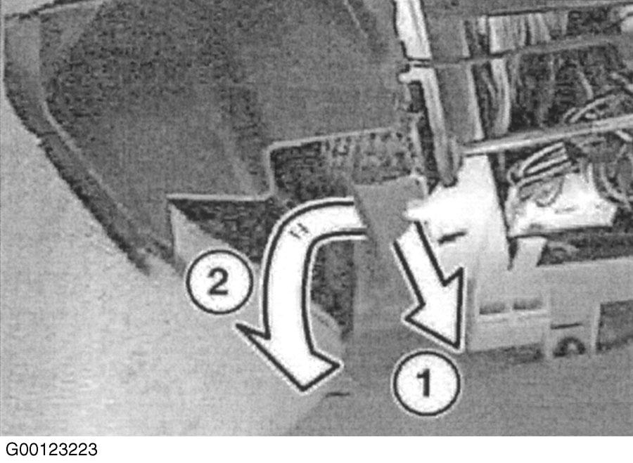 - Open detent for plug connector (1). Remove connector from control unit by tilting out (2). See Fig 4 .
