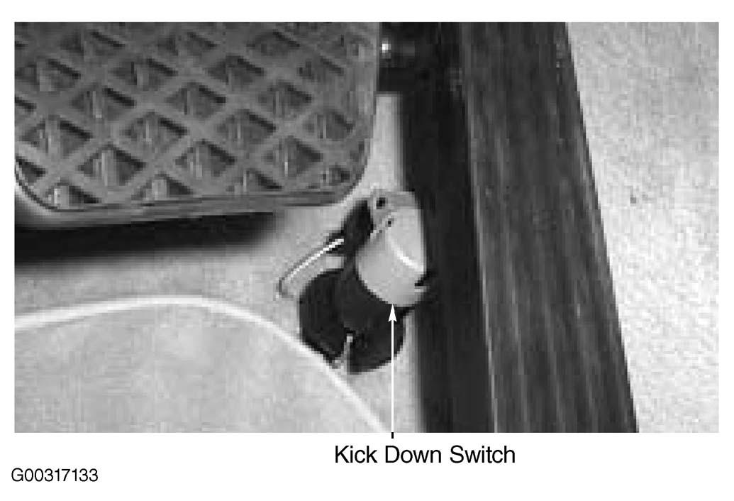 When the throttle pedal is pressed fully to the floor, the kick down switch closes providing a ground signal to the GS 20. The GS 20 recognizes the ground as a request to provide an immediate down shift and to switch to the AGS sport mode shifting program. See Fig 1 .