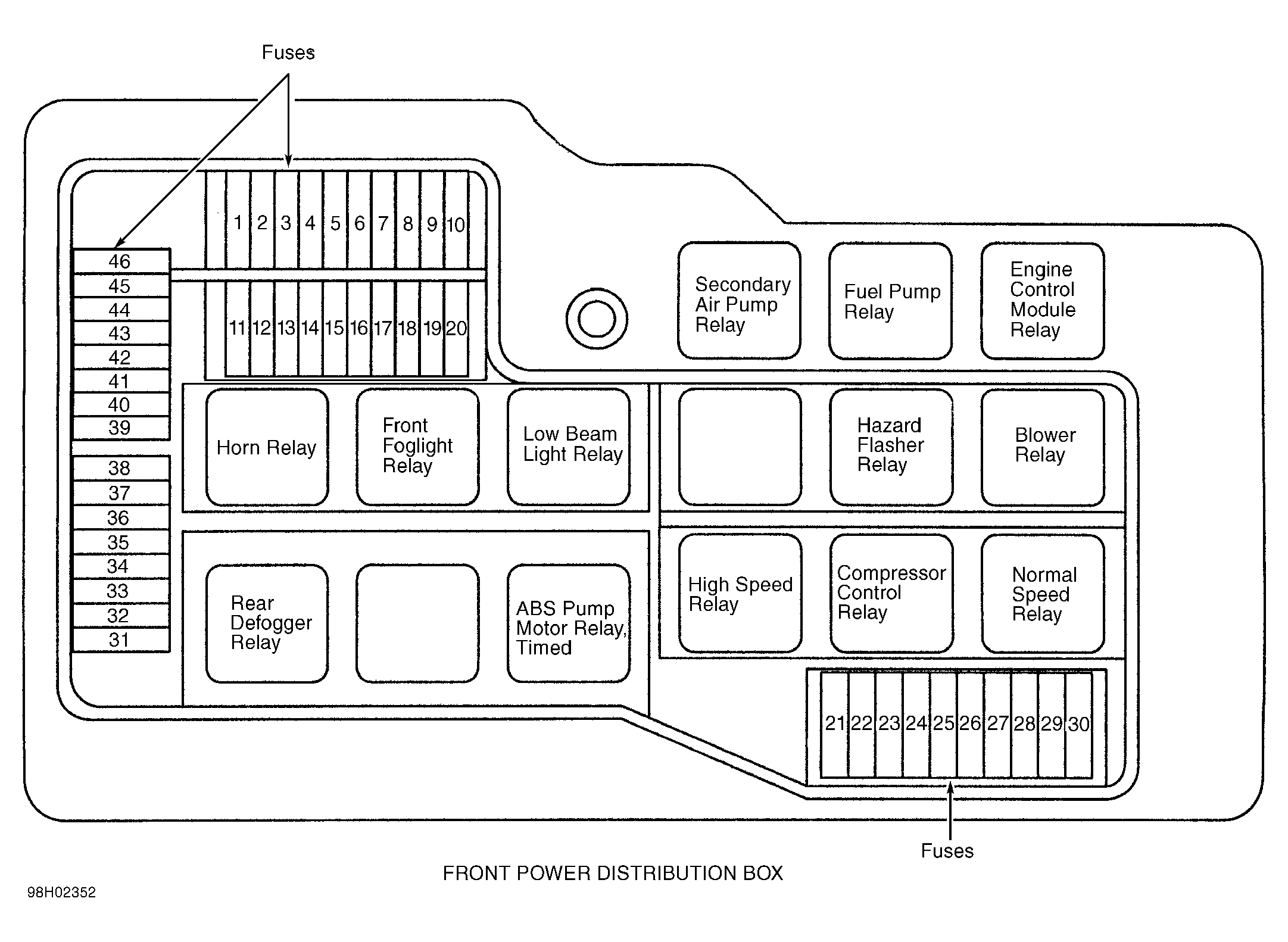 Front Power Distribution Box In left rear corner of engine compartment. See Figure .