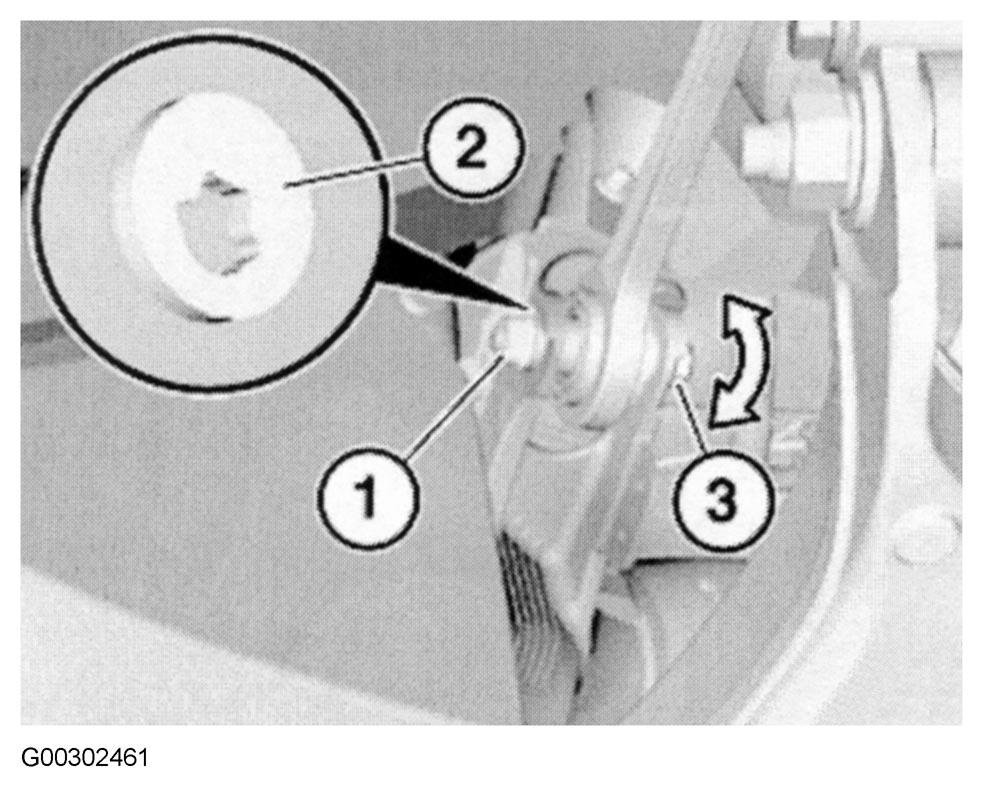 - Adjust toe-in using eccentric screw (3). Adjust precisely to specification. See WHEEL ALIGNMENT SPECIFICATIONS .