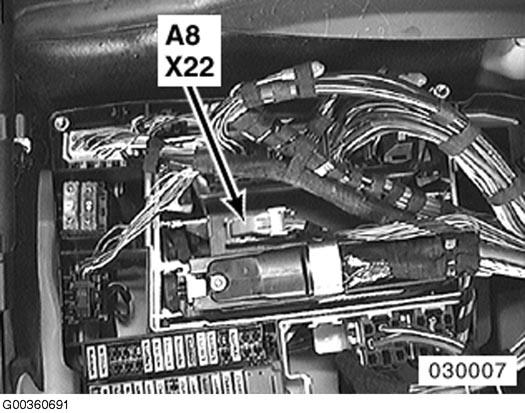 | Engine Control Module II (DME) (A6020) | Right rear of engine compartment. |