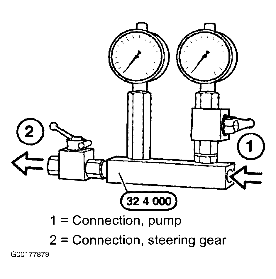 Depending on the pressure hose connection on the pump, the special tool (32 4 000) must be assembled. See Figure.