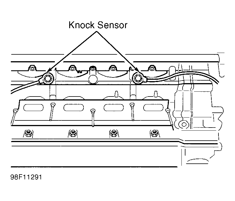6. Completely disconnect throttle cable from engine. Remove intake manifold. Mark knock sensor connectors for reassembly reference. Remove knock sensor(s). See Fig 1. To install, reverse removal procedure. Ensure knock sensors are connected to proper connectors.