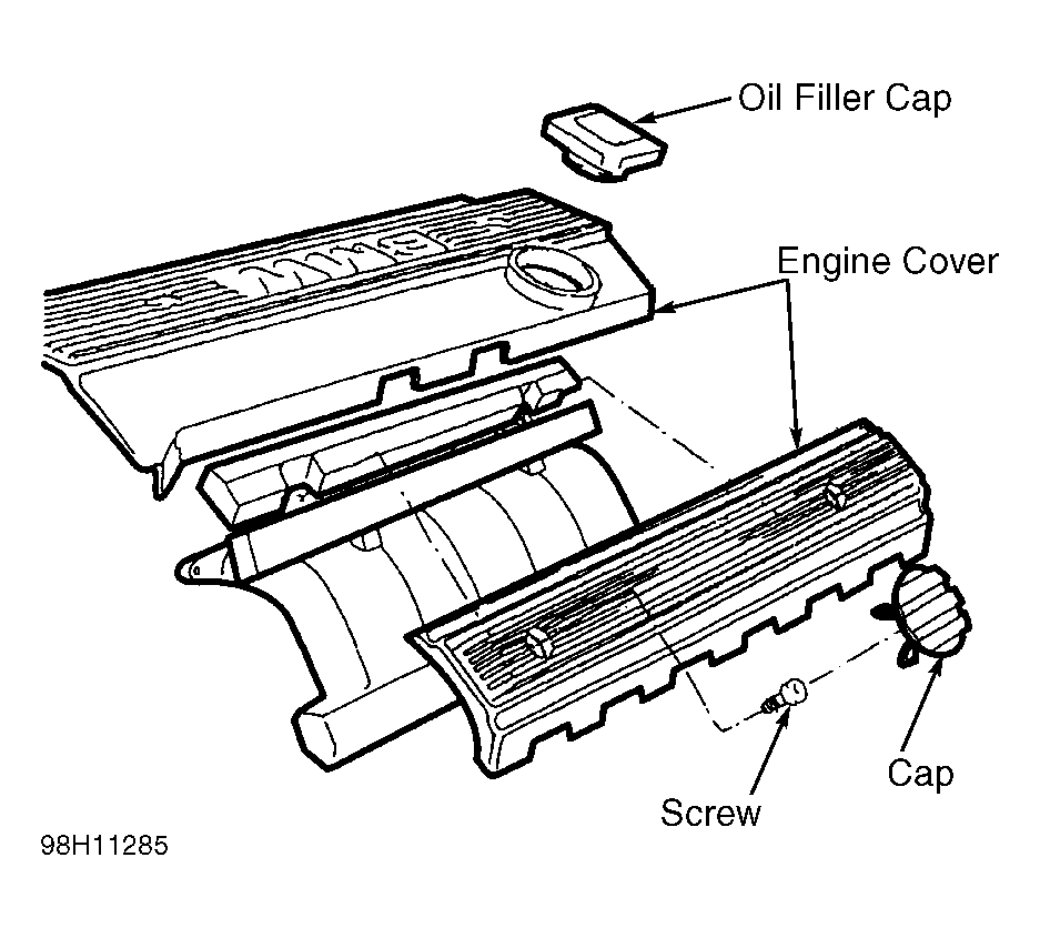 1. Remove engine cover. See Figure. Disconnect vacuum hoses to intake manifold and throttle body. Drain radiator and remove coolant expansion tank. Remove coolant manifold from rear of cylinder heads.