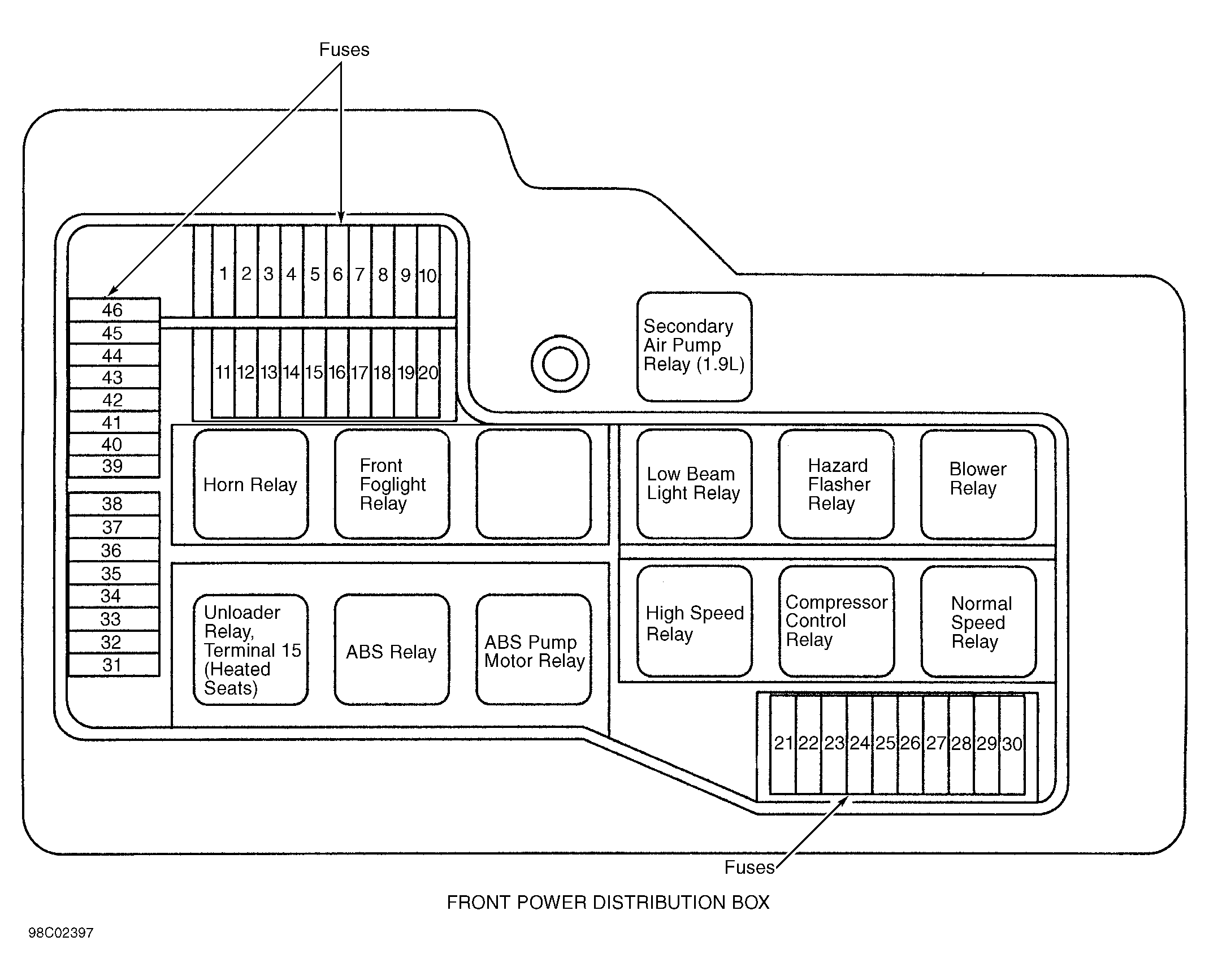 | Front Power Distribution Box | On left rear corner of engine compartment. |