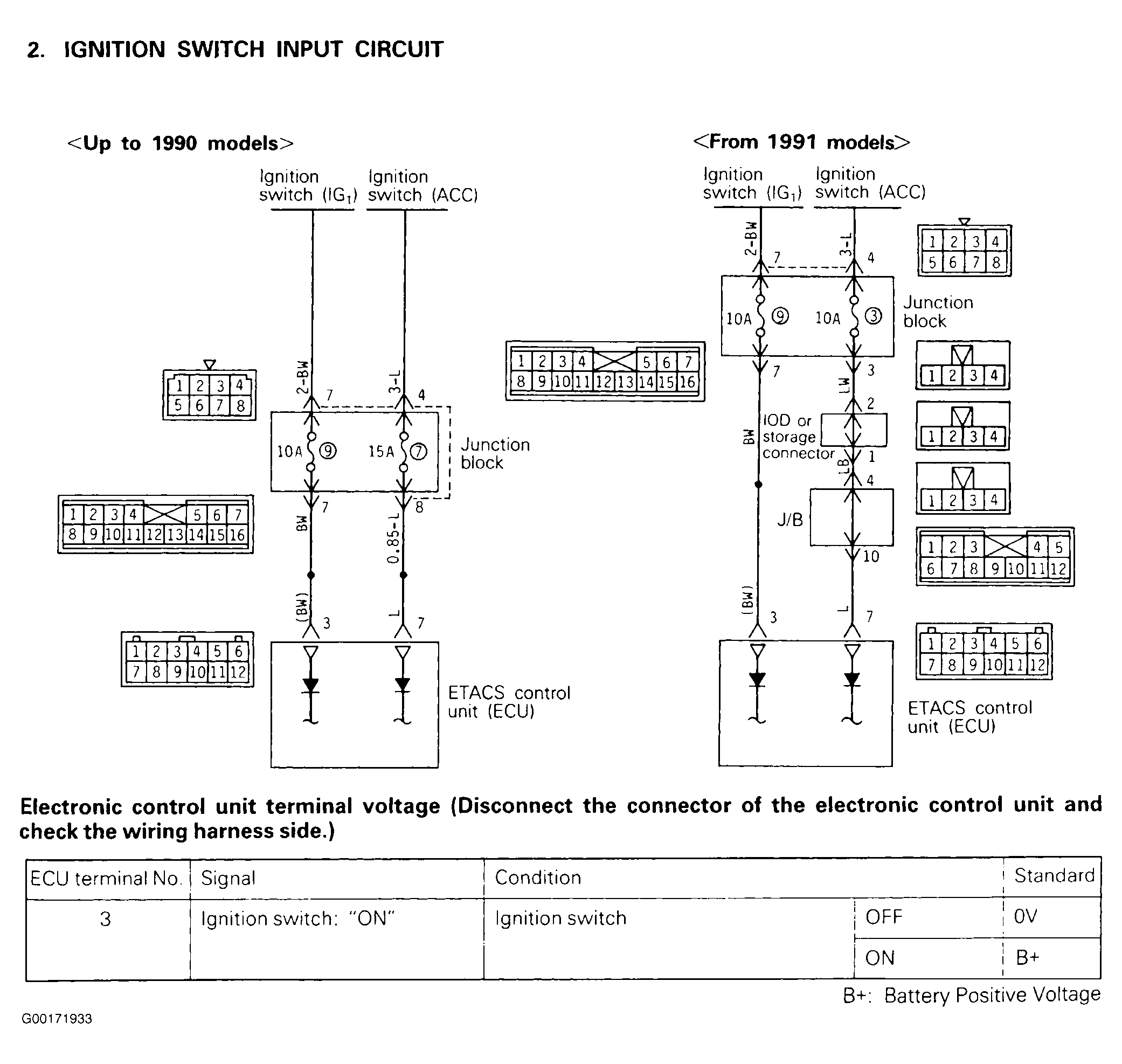 Home >> Mitsubishi >> 1990 >> Galant LS >> Repair and Diagnosis >> Body & Frame >> Power Windows >> Component Testing >> Power Windows Circuit >> Test No. 2: Ignition Switch Input Circuit