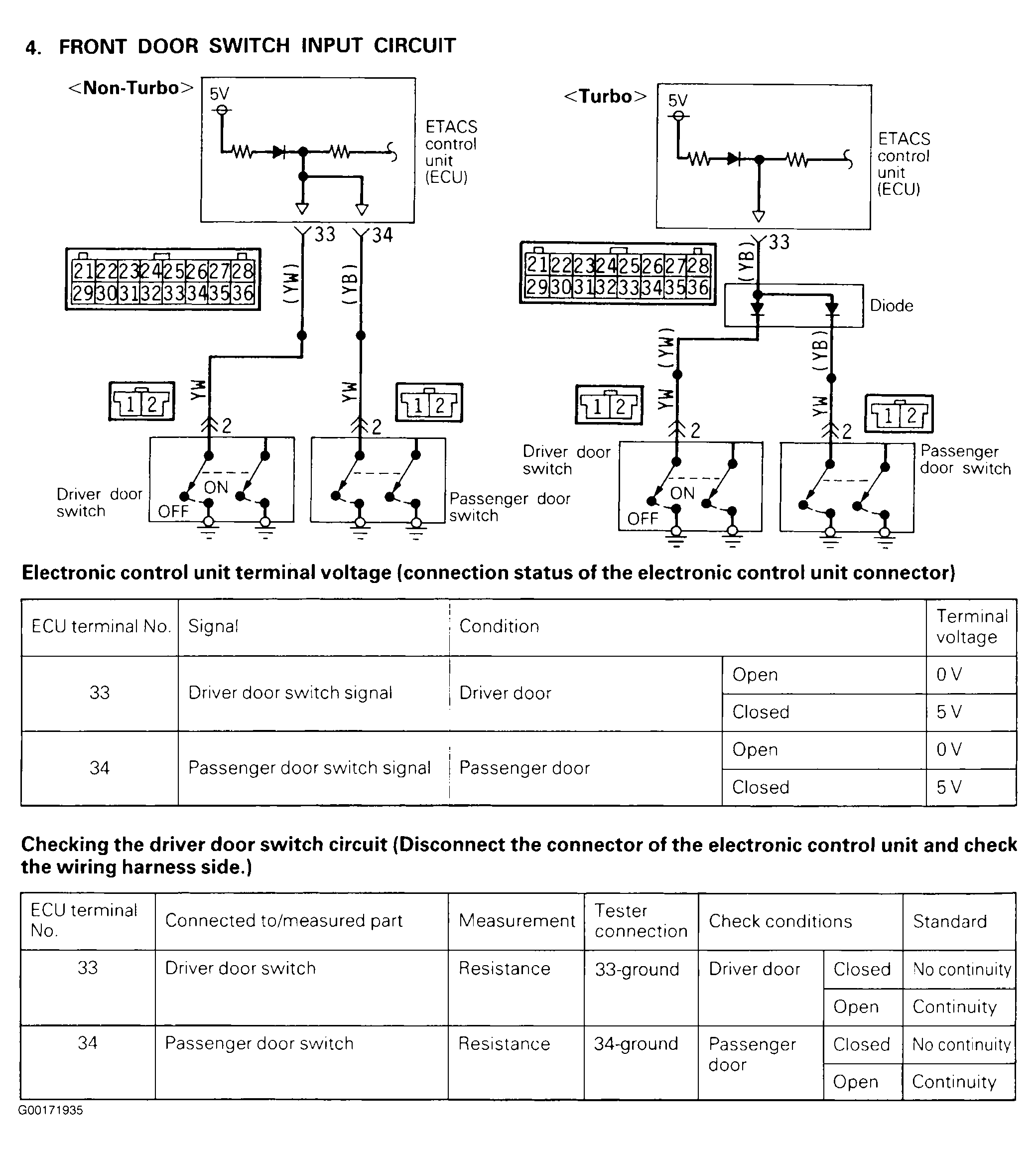Test No. 4: Front Door Switch Input Circuit)