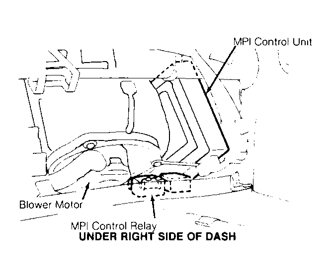 | Multi Point Injection (MPI) Control Unit | Under right side of dash. See Figure . |