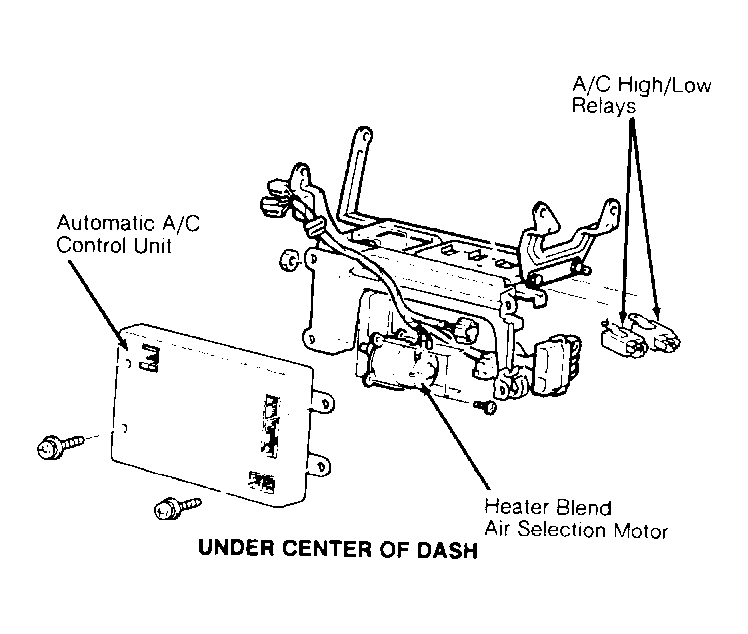 | Automatic A/C Control Unit | Under center of dash. See Figure . |