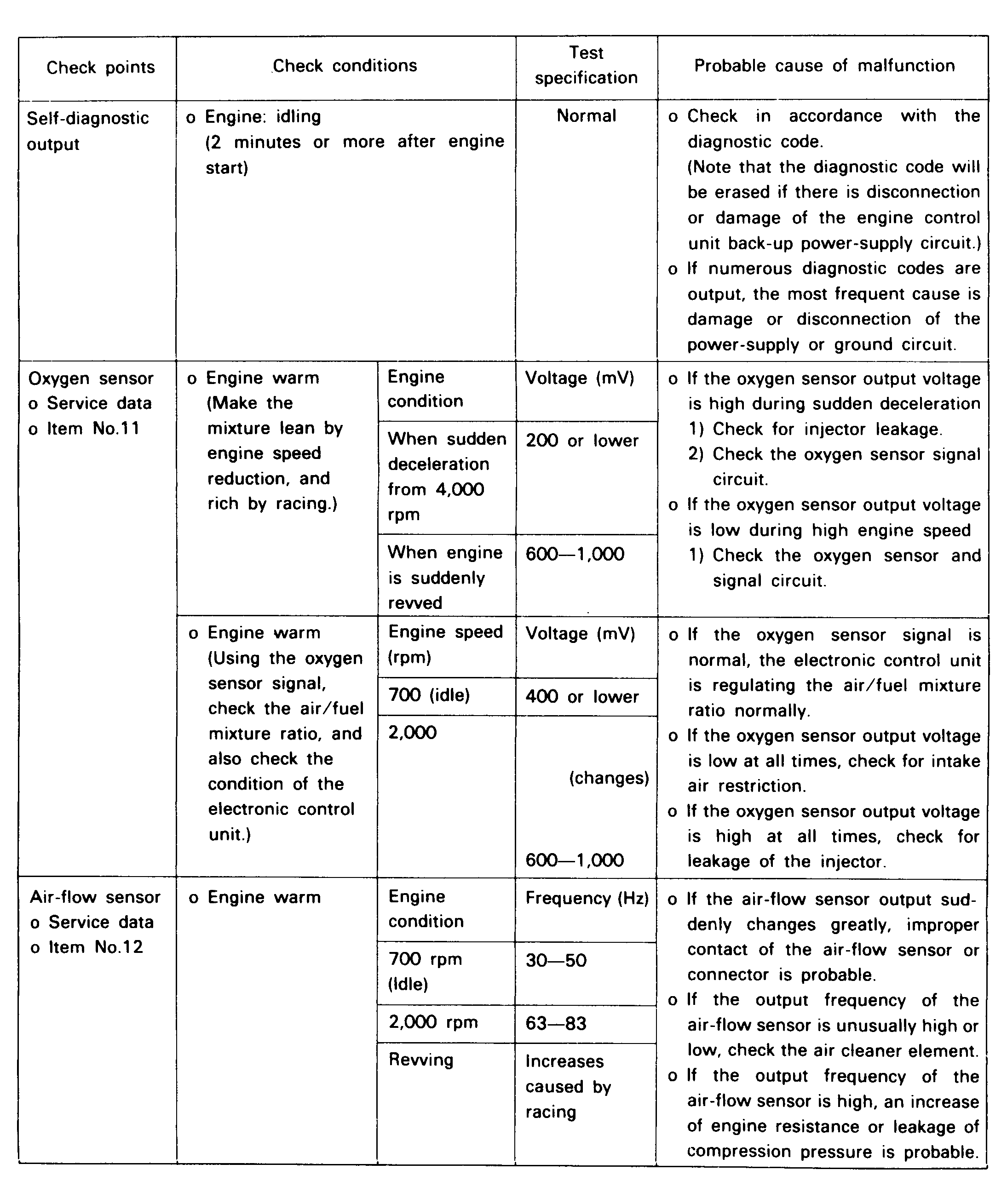 11 O2 Sensor Fuel Press., Injectors, Vac. Leak, O2 Sens. Figure