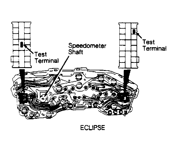 - Vehicle Speed Sensor (VSS) is located in speedometer assembly. Connect an ohmmeter between sensor test terminals on back of instrument panel. See Fig 1