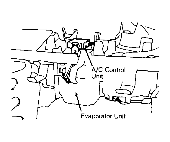 | A/C Control Unit | Behind right side of dash, above evaporator case. See Figure. |