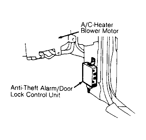 | Anti-Theft Alarm/Door Lock Control Unit | Behind right side of dash, above kick panel. See Figure. |