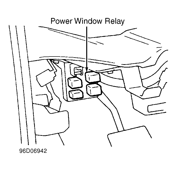 - Remove power window relay from fuse/relay block located in engine compartment. SeeFig 1