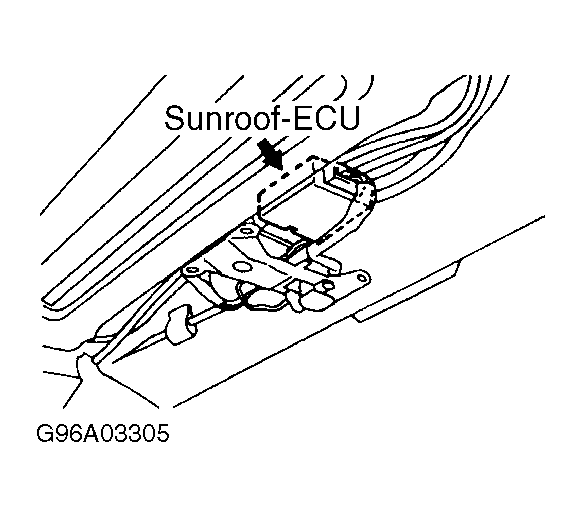 | Sunroof-ECU | Center of windshield header. See Figure. |