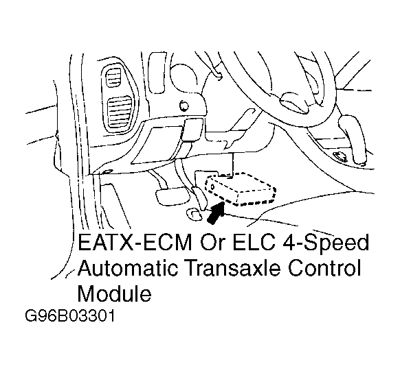 | ELC 4-Speed Automatic Transaxle Control Module (2.0L Turbo & 2.4L) | Behind center of dash. See Figure. |