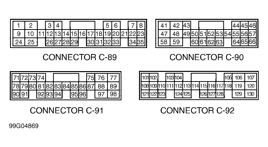 The following terminal illustrations are shown as viewed from component side of connector. Vehicles are equipped with different combinations of components. Not all components are used on all models. To determine component usage, see appropriate wiring diagram in