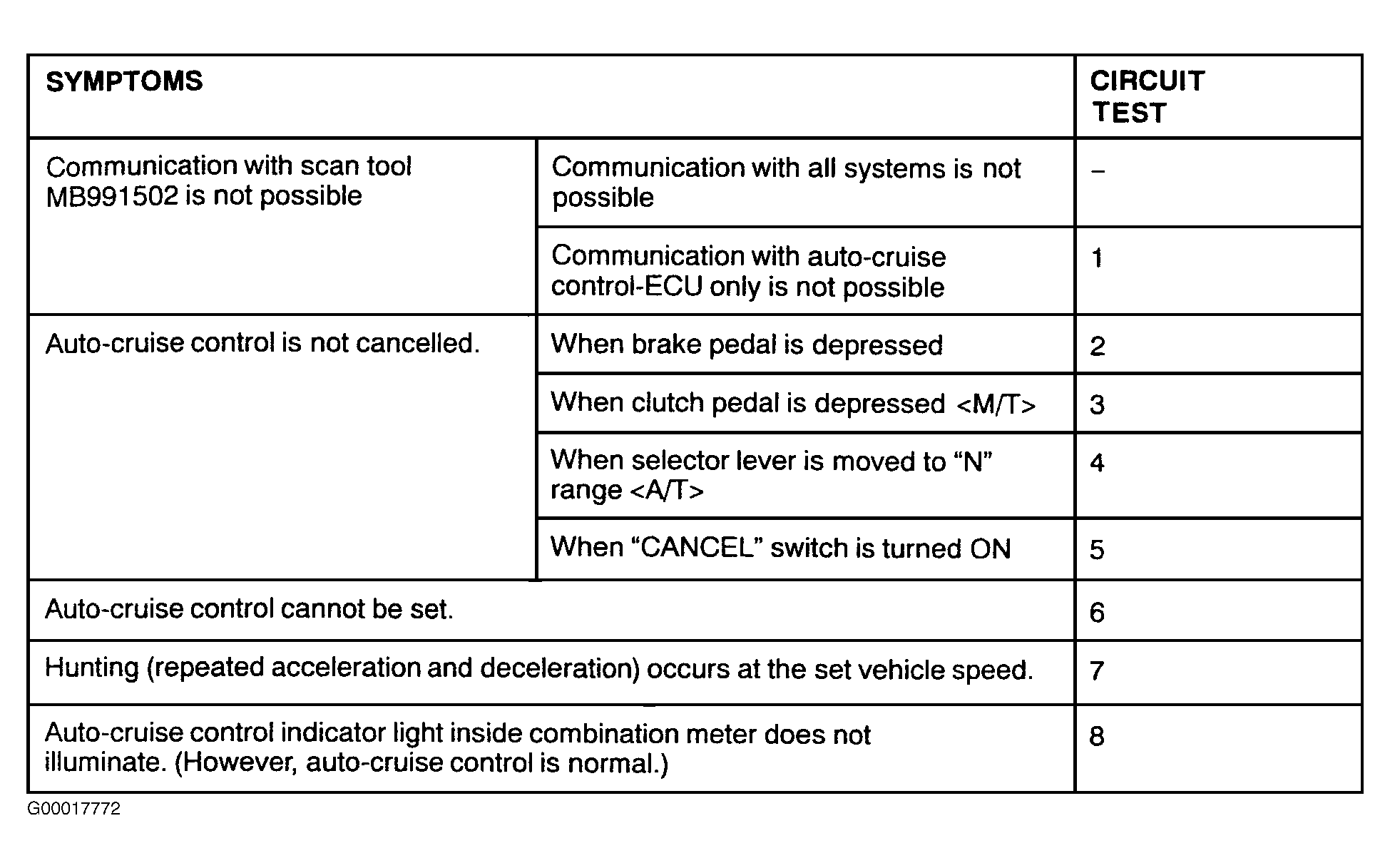 Home >> Mitsubishi >> 2000 >> Eclipse GS, Standard >> Repair and Diagnosis >> External Pages >> Different car >> Section 13 (Cruise Control Systems) >> System Tests >> Notes