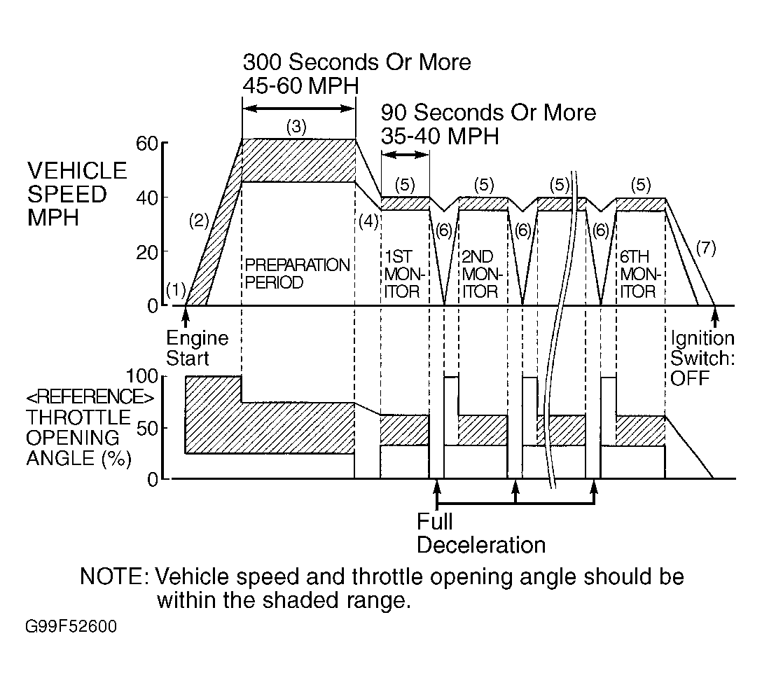 - Fully close throttle and decelerate for 10 seconds. Then, quickly accelerate until speed is 35-40 MPH. Then repeat steps 5) and 6) five more times.