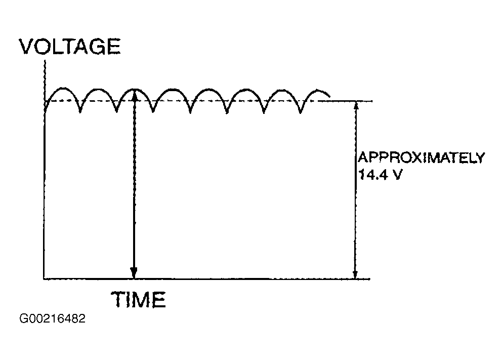 The generator output voltage rises as the field current increases and it falls as the field current is cut off. When the battery positive voltage (generator S-terminal voltage) reaches a regulated voltage of approximately 14.4V, field current is cut off. when battery positive voltage drops below the regulated voltage, voltage regulator regulates the output voltage to a constant level by controlling the field current.